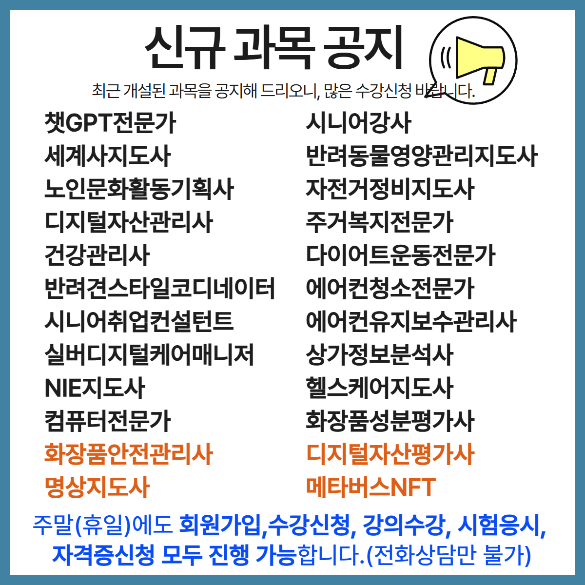 홈페이지 접속하여 교육 및 자격증 취득 가능합니다.