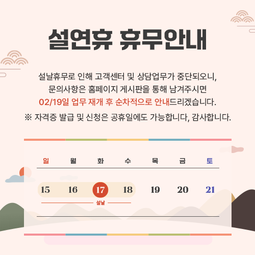 (공지사항 또는 자격증별 상세페이지 확인)