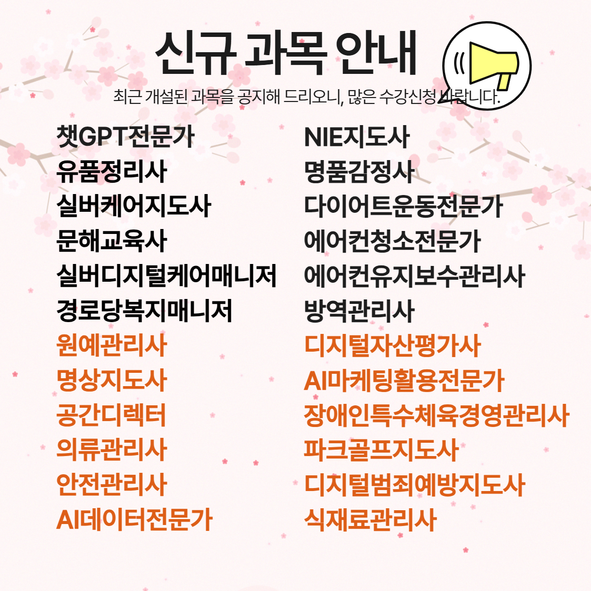 모든 자격증은 1급 자격증이며 하위등급 자격증 미 소지 초보자도 바로 1급 취득 가능합니다. 추후, 승급을 위한 비용부담 없음
